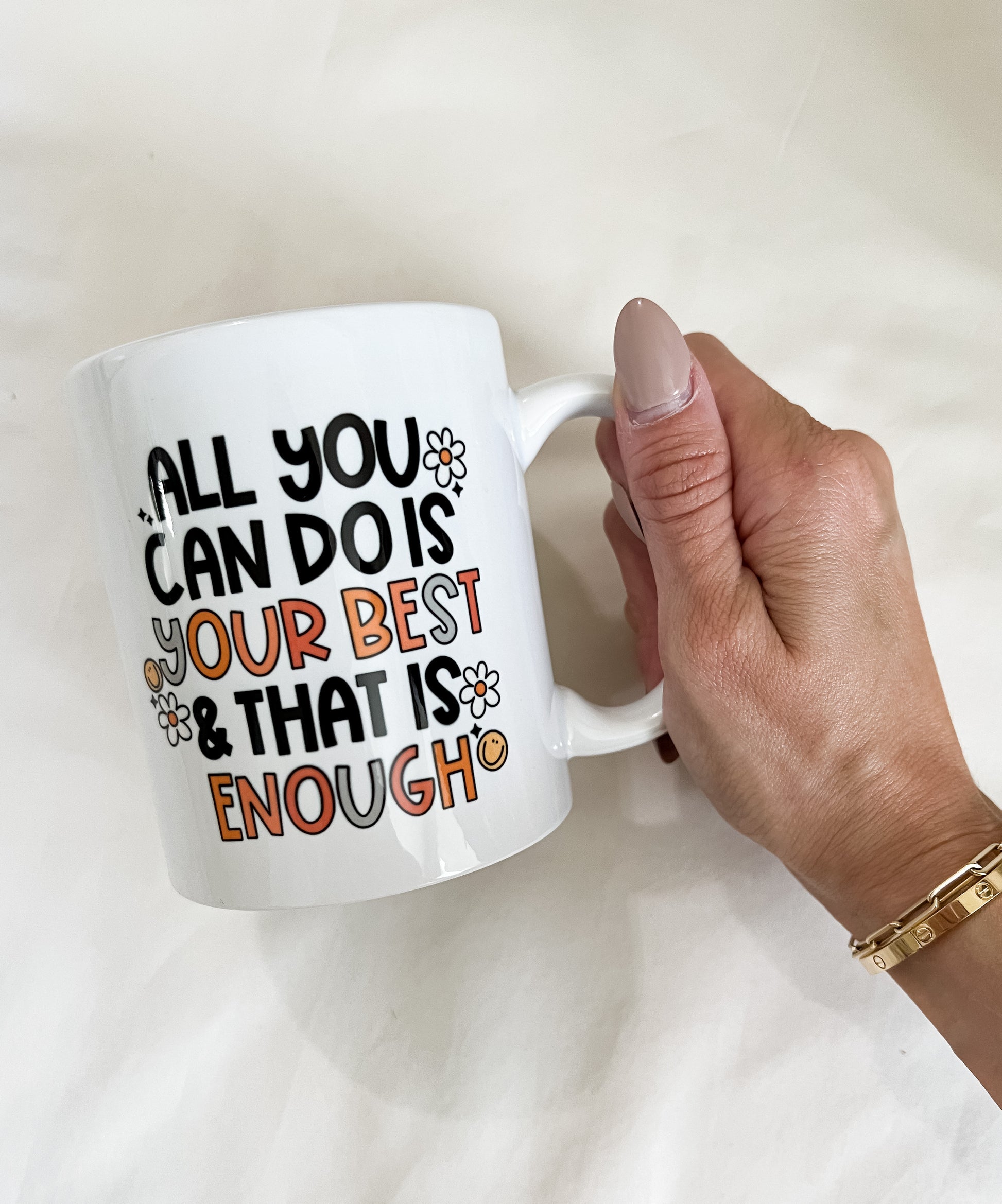 Get positive with this cute design that says "All you can do is your best and that is enough."