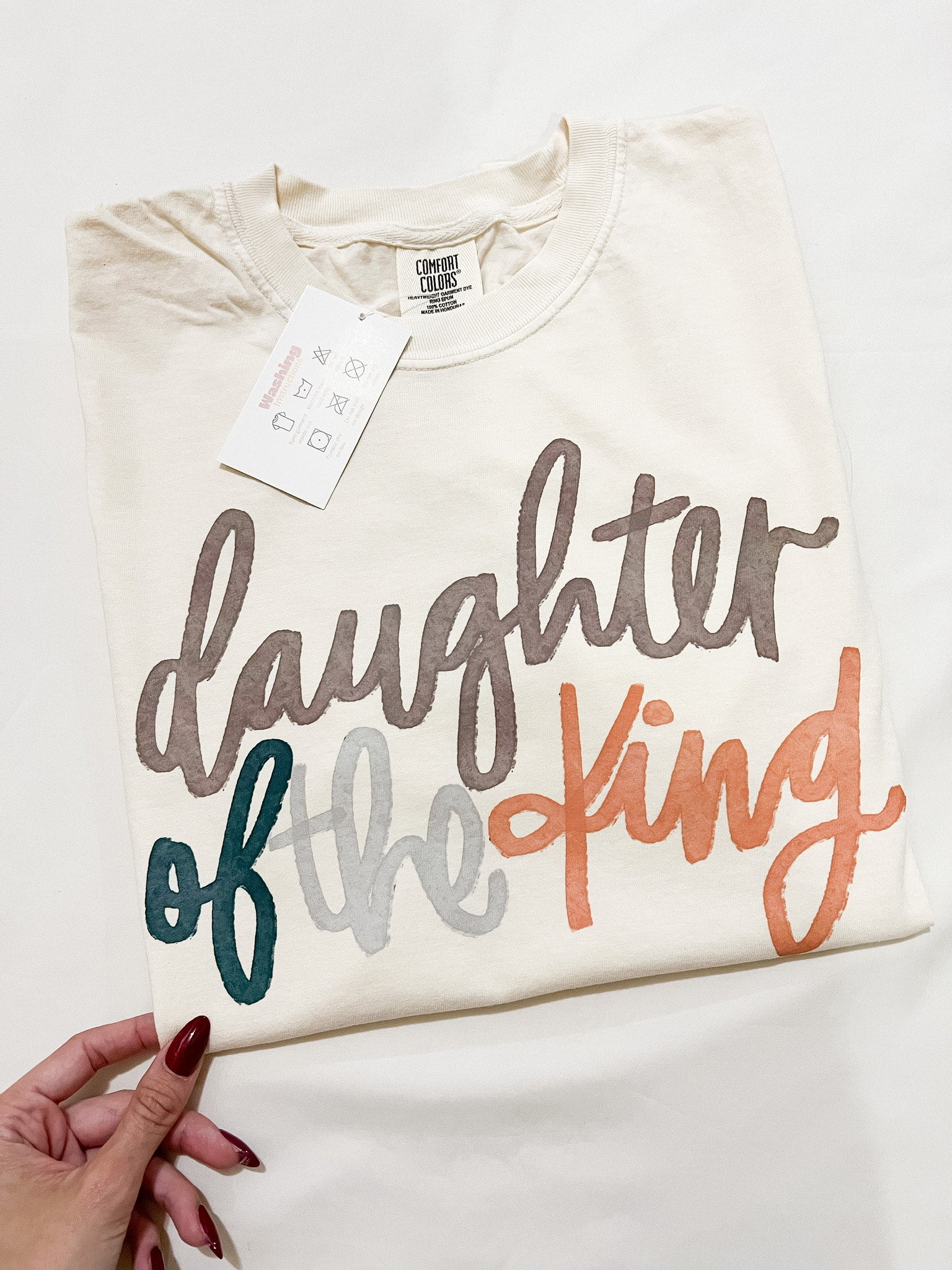Comfort Colors 100% Cotton T-Shirt in color Ivory with a DTF print (Daughter of the King).